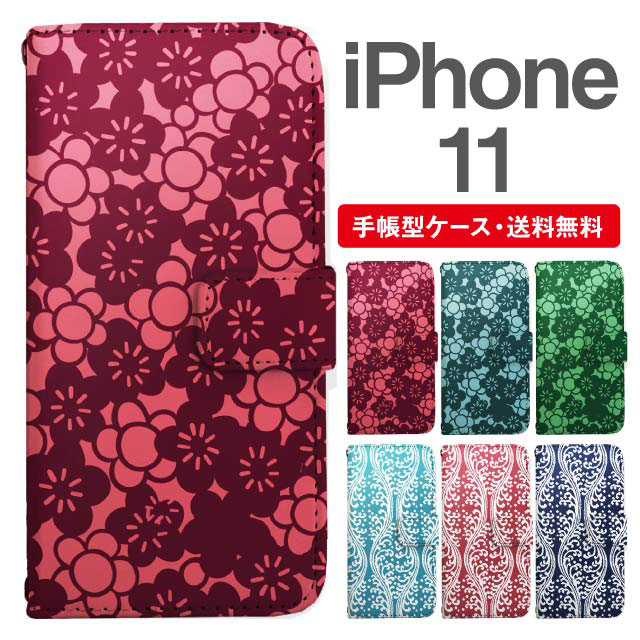 スマホケース 手帳型 iPhone 11 アイフォン 携帯ケース カバー 送料無料 和柄 梅 小紋 波立涌 agesugi_ssm