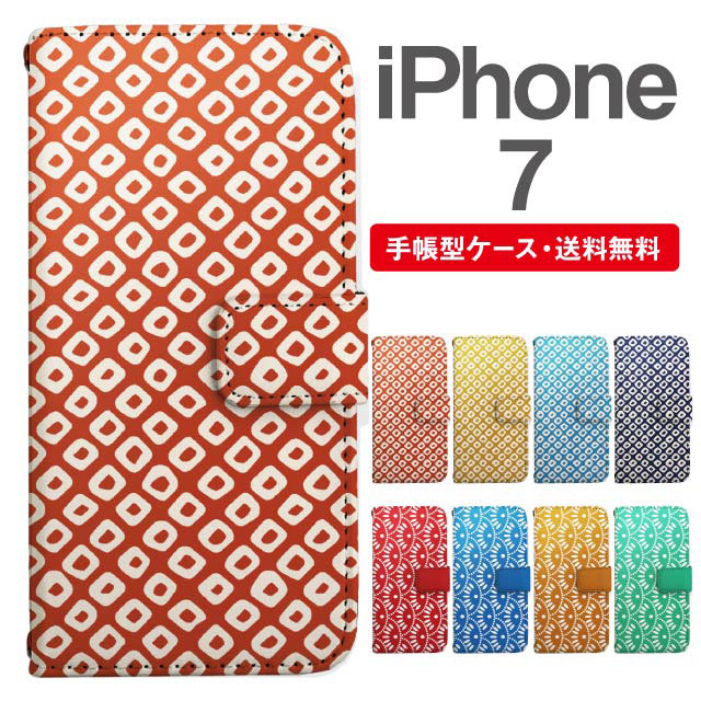 スマホケース 手帳型 iPhone7 アイフォン 携帯ケース カバー 送料無料 和柄 匹田鹿子 菊青海波 agesugi_ssm