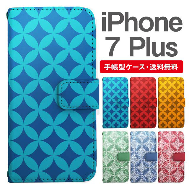 スマホケース 手帳型 iPhone7Plus アイフォン 携帯ケース カバー 送料無料 和柄 七宝 agesugi_ssm