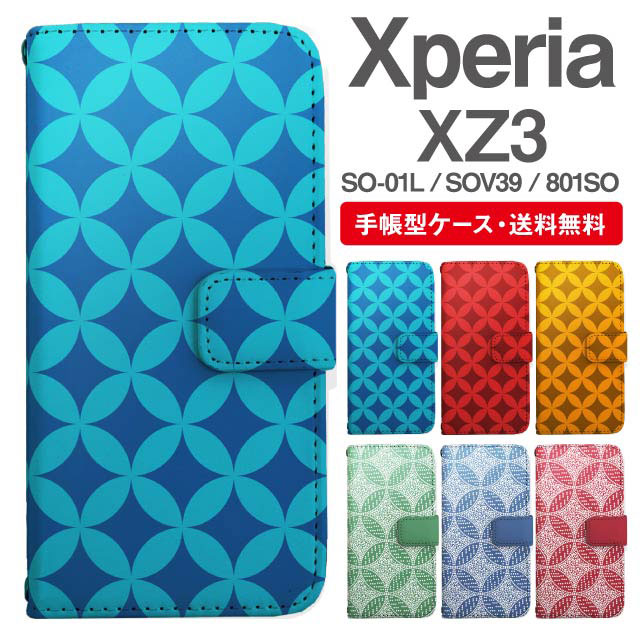 スマホケース 手帳型 Xperia XZ3 エクスペリア SO-01L SOV39 801SO 携帯ケース カバー 送料無料 和柄 七宝 agesugi_ssm