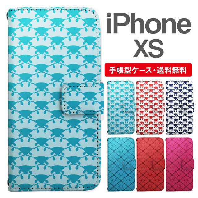 スマホケース 手帳型 iPhone XS アイフォン 携帯ケース カバー 送料無料 和柄 雪輪青海波 菊四菱 agesugi_ssm