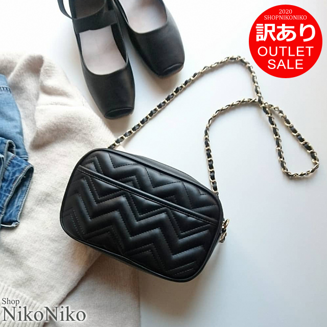 アウトレット 訳あり レザー調チェーンバッグ 【即納】 シンプル レザー調 ブラック チェーン バッグ キルティング トレンド レディース 韓国ファッション 流行