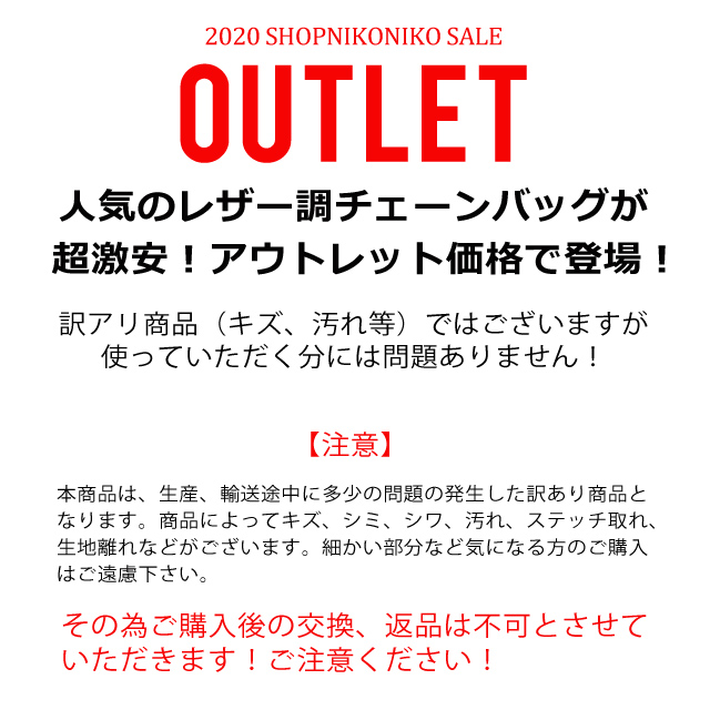 人気インスタグラマーに多数紹介されましたリッチなゴールドのチェーンにキルティングが今年っぽいコンパクトなのに存在感のあるレザー調ショルダーバッグいつものコーデに取り入れるだけで一気におしゃれ度の増すアイテム!!■【アウトレット商品ご購入の注意】本商品は生産、輸送途中に多少の問題の発生した訳あり商品となります。商品によってキズ、シミ、シワ、汚れ、ステッチ取れ、生地離れなどがございます。細かい部分など気になる方のご購入はご遠慮ください。そのため、ご購入後の交換、返品は不可とさせていただきます!ご注意ください。■サイズ詳細は画像に記載■キャンセル・変更不可