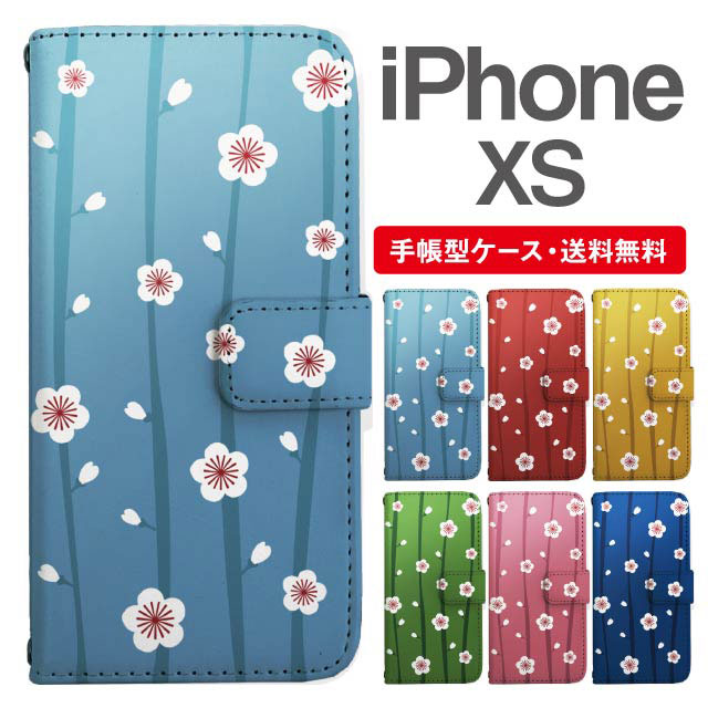 スマホケース 手帳型 iPhone XS アイフォン 携帯ケース カバー 送料無料 和柄 梅 花柄 フラワー agesugi_ssm