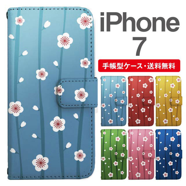 スマホケース 手帳型 iPhone7 アイフォン 携帯ケース カバー 送料無料 和柄 梅 花柄 フラワー agesugi_ssm
