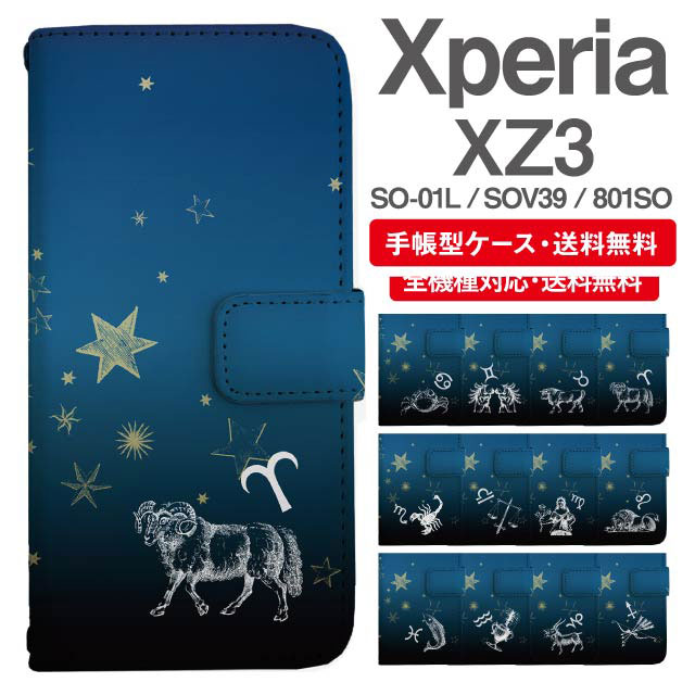 スマホケース 手帳型 Xperia XZ3 エクスペリア SO-01L SOV39 801SO 携帯ケース カバー 送料無料 星座 牡羊座 牡牛座 双子座 蟹座 獅子座 乙女座 天秤座 蠍座 射手座 山羊座 水瓶座 魚座 agesugi_ssm