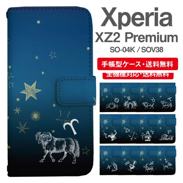 スマホケース 手帳型 Xperia XZ2 Premium エクスペリア SO-04K SOV38 携帯ケース カバー 送料無料 星座 牡羊座 牡牛座 双子座 蟹座 獅子座 乙女座 天秤座 蠍座 射手座 山羊座 水瓶座 魚座 agesugi_ssm