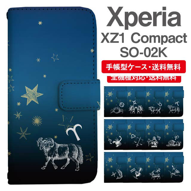スマホケース 手帳型 Xperia XZ1 Compact エクスペリア SO-02K 携帯ケース カバー 送料無料 星座 牡羊座 牡牛座 双子座 蟹座 獅子座 乙女座 天秤座 蠍座 射手座 山羊座 水瓶座 魚座 agesugi_ssm