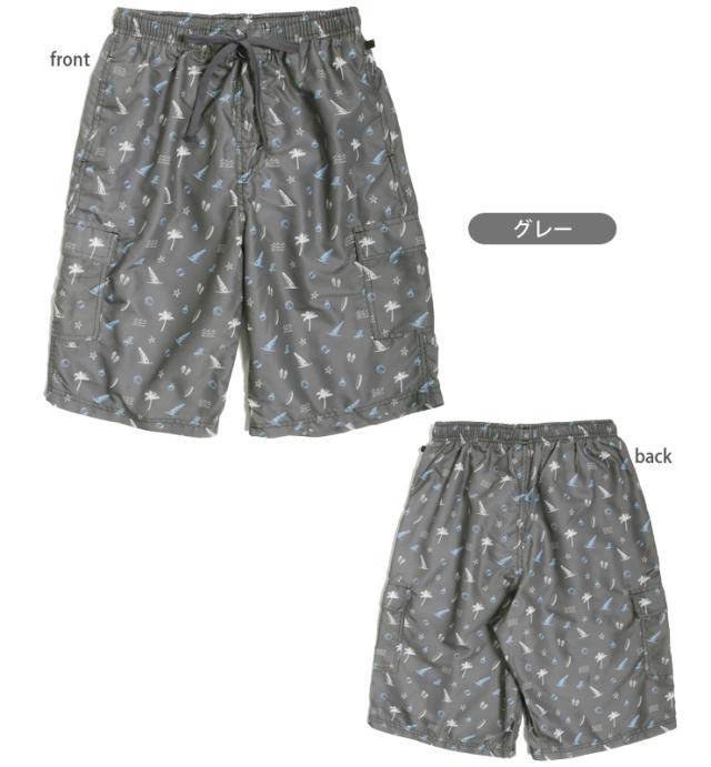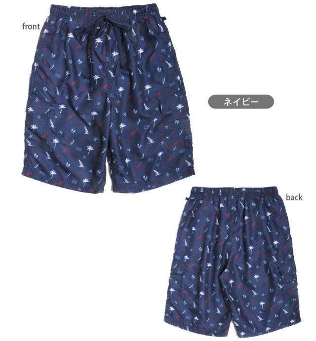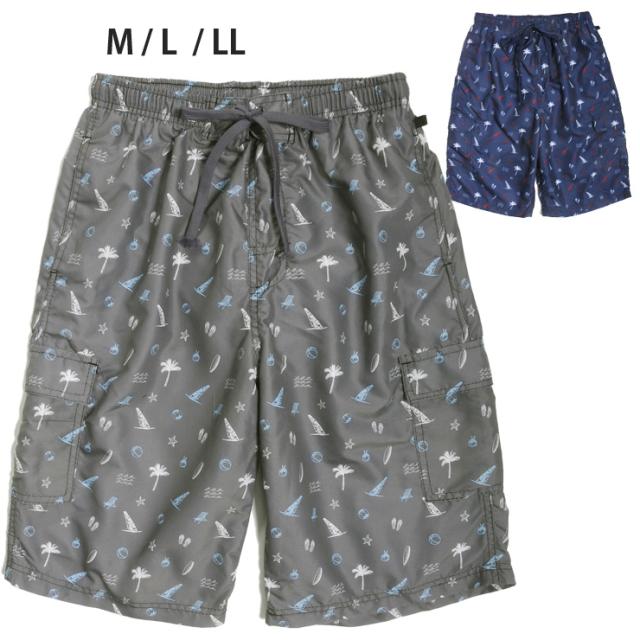 【メール便送料無料】【大きいサイズあり】メンズ用ヤシ・ヨット柄サーフパンツ水着 M L LL スイムウェア No.sw2778