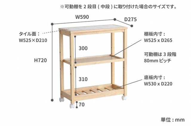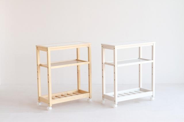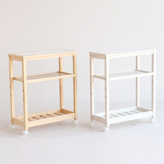 キャスター付きキッチンワゴン 3段 Soup Slim Wagon タイルトップワゴン 天板タイル 台所収納 キッチン 食器収納 スリムワゴン(代引不可)