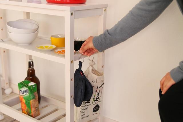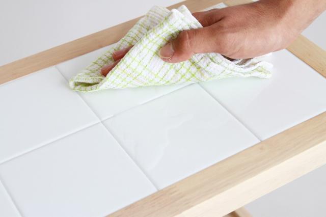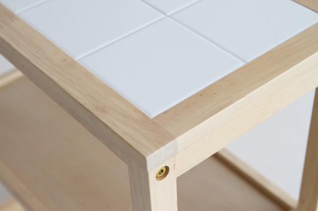 天板は熱に強いタイル仕様となっており、簡易的にお鍋やケトルなどを置くことが出来て機能的。