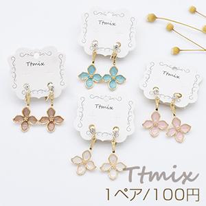 エポフラワーイヤリング 3mm石付 ネジバネ式イヤリング 4弁花【1ペア】
