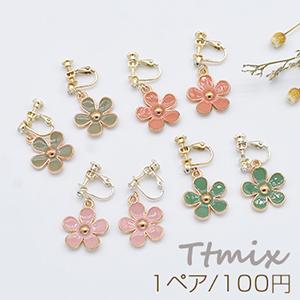 エポフラワーイヤリング 3mm石付 ネジバネ式イヤリング 5弁花【1ペア】