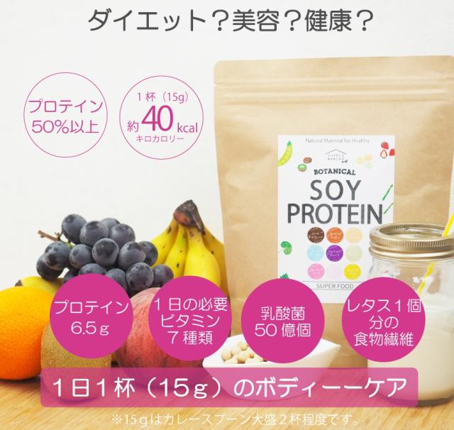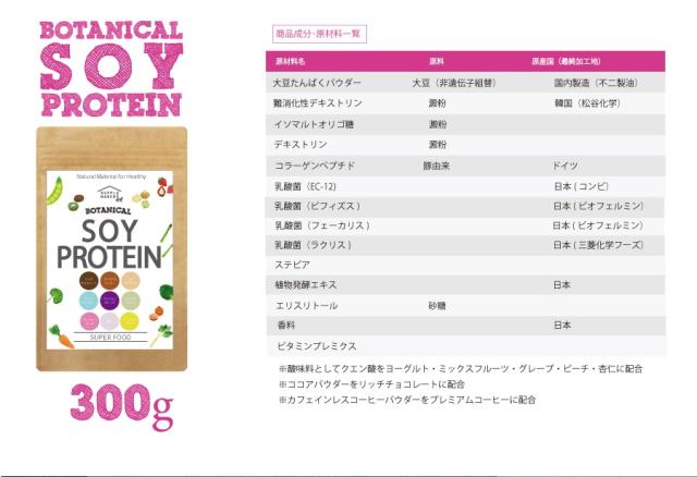 ソイプロテインフレーバー 誰でも美味しく飲めるボタニカル ソイプロテイン 300g 選べる9種類の味 大豆プロテイン 7種のビタミン コラーゲン 乳酸菌 酵素パウダー 送料無料 ダイエット 美6大人工甘味料不使用