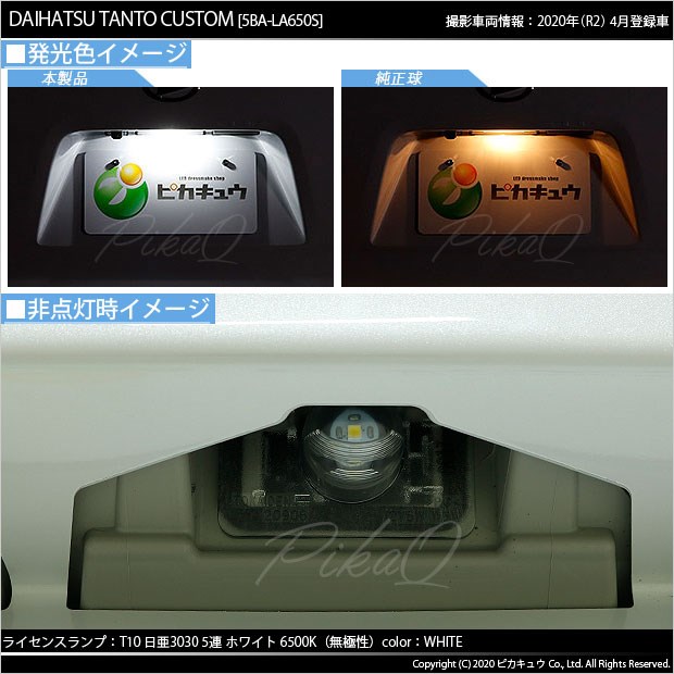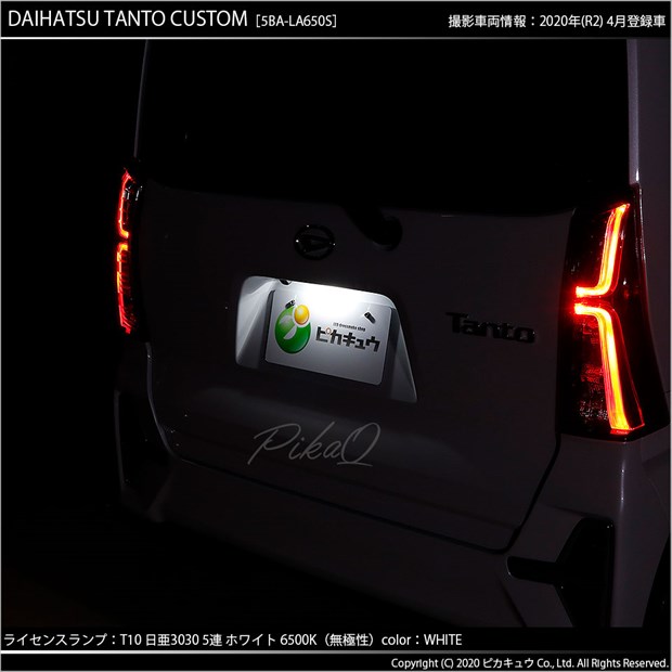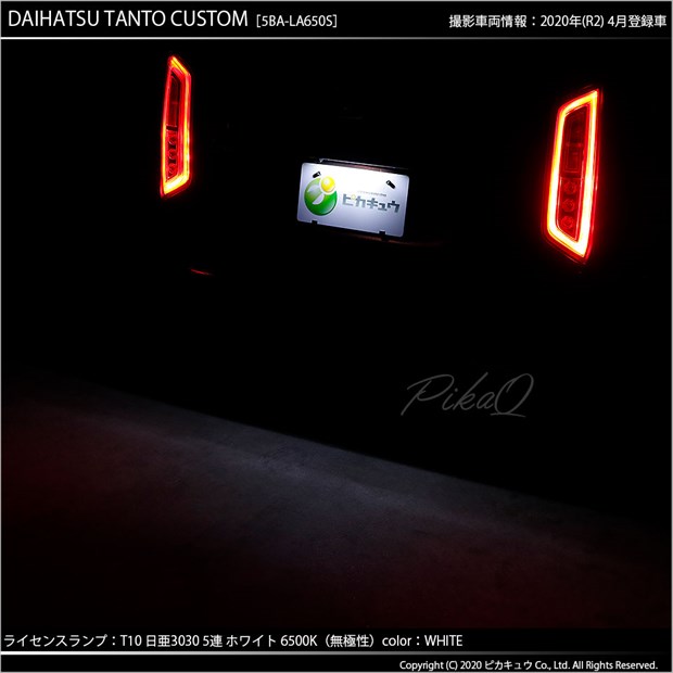 ダイハツ タントカスタム[LA650S/LA660S]対応ライセンスランプ用 LEDバルブ 日亜化学工業製素子使用 140lmの大出力 T10 日亜3030 5連 LEDウエッジバルブ LEDカラー:ホワイト 色温度:6500K 1セット1個入り | ||||