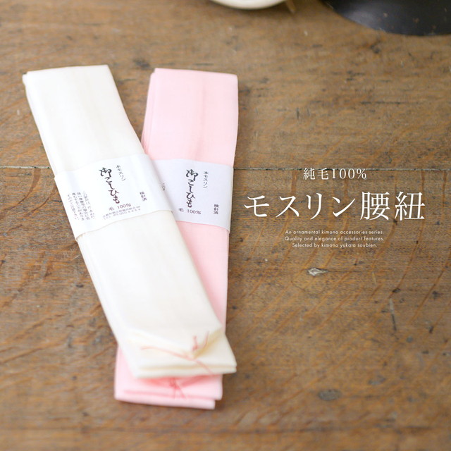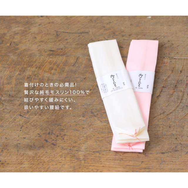 腰紐 モスリン 振袖 浴衣 ピンク 白 毛 シンプル 腰ひも こしひも 着付け小物 和装小物 メール便対応