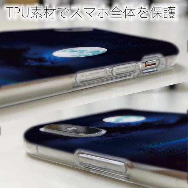 | ケースの素材について | 側面はゴムのように柔らかいTPU素材で、スマホ本体を守ります。万が一の落下でもケースが割れることがなく、耐久性の高いケースとなります。クリア(透明)のTPUケースにプリントしていますので、スマホ本体のカラーを活かしながらデザインケースが楽しめます。 |