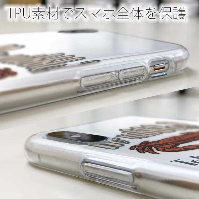 | ケースの素材について | 側面はゴムのように柔らかいTPU素材で、スマホ本体を守ります。万が一の落下でもケースが割れることがなく、耐久性の高いケースとなります。クリア(透明)のTPUケースにプリントしていますので、スマホ本体のカラーを活かしながらデザインケースが楽しめます。 |