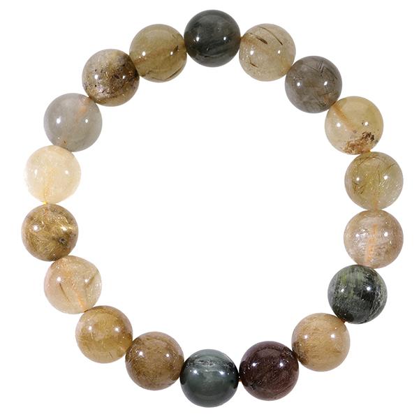 ミックスルチルクォーツ ブレスレット 11mm 18cm メンズM レディースL サイズ