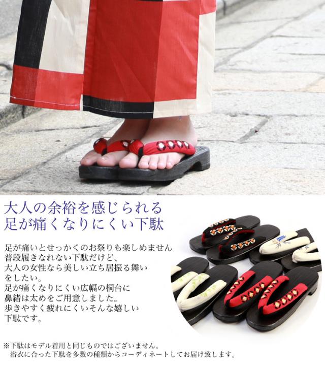 | 備考 | ※浴衣の柄の配置はモデル着用とまったく同じではございません。予めご了承下さいませ。 ※下駄は当店がコーディネートしてお選びさせて頂きます。 | |||