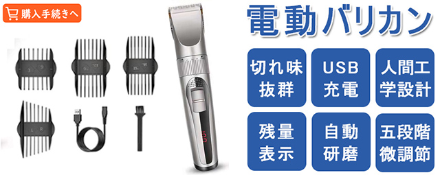 - 商品無事届きました。早い発送ありがとうございます。今まで使っていたバリカンが使用中に壊れてしまったので急ぎでこちらの商品を購入させて頂きました。充電満タンの状態で届いたのですぐ使用出来ました。音も静か...