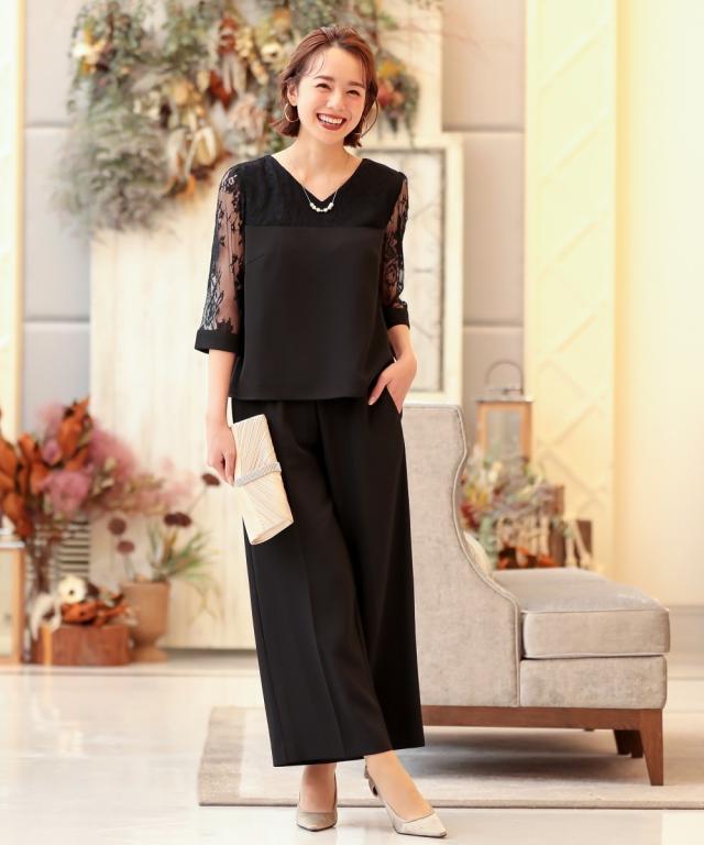 落ち着いた印象でフォーマルシーンで着回せるワイドパンツセットアップドレス