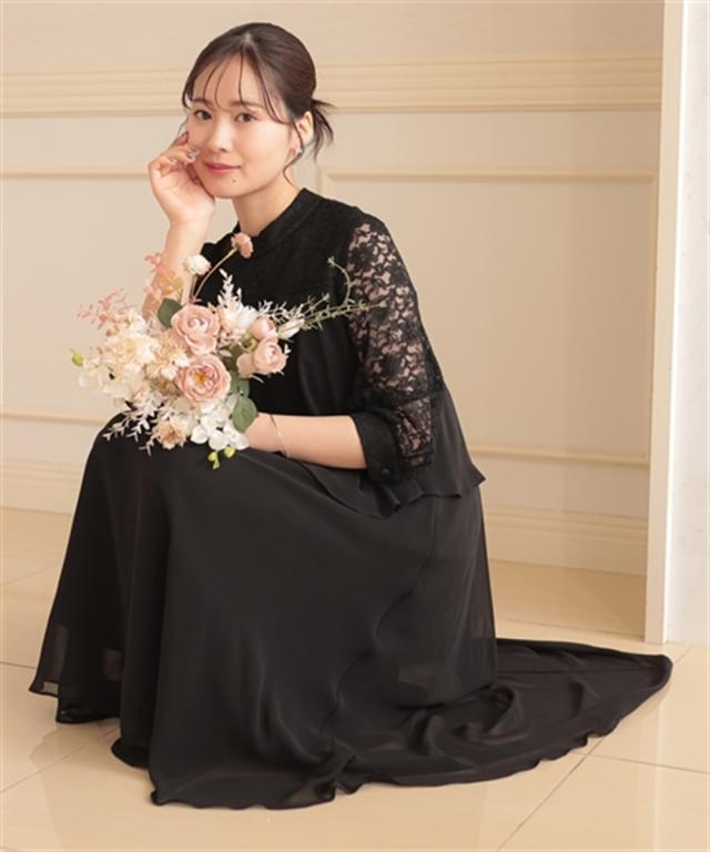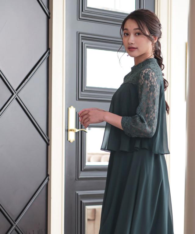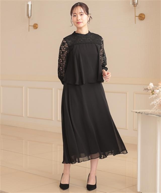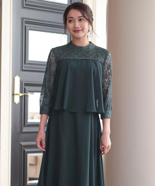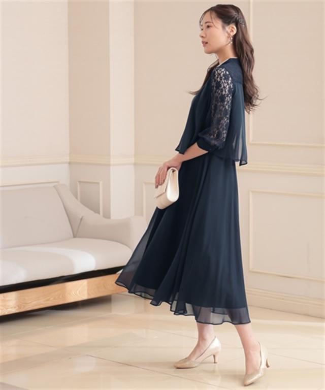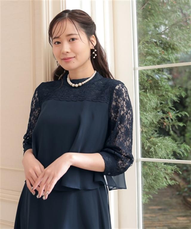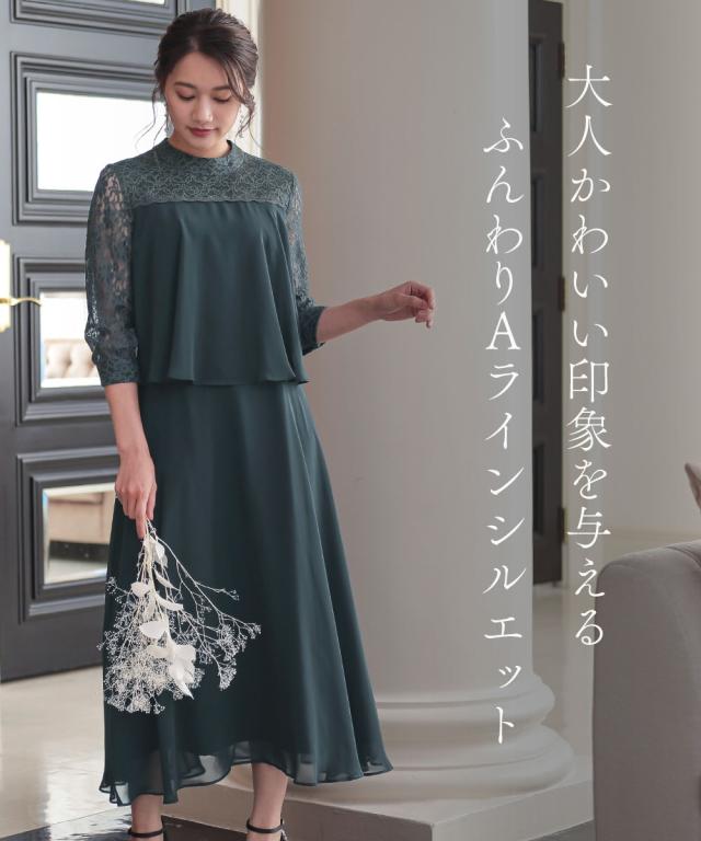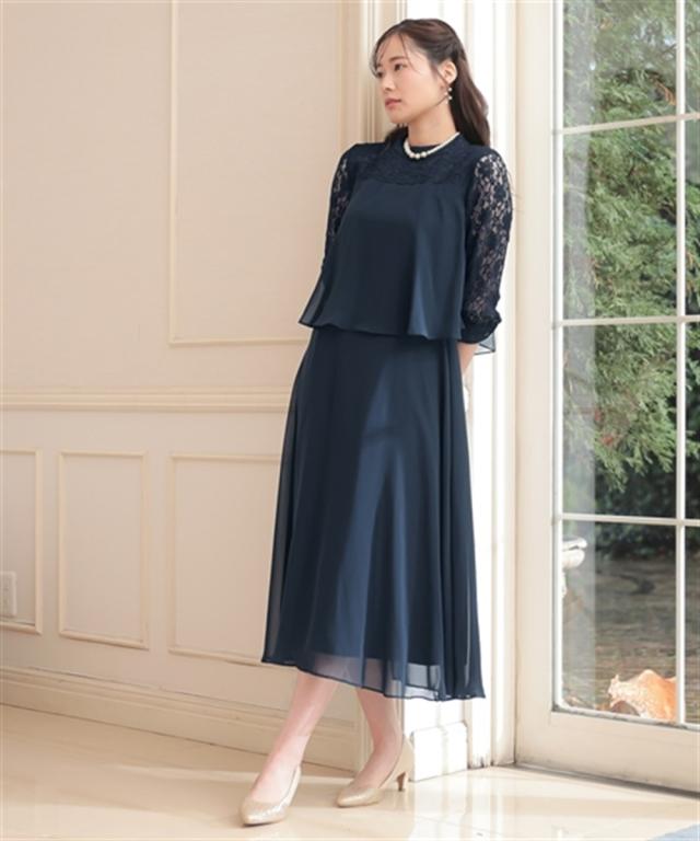 レースヨーク×スタンドカラーの、大人可愛いワンピースドレス ●こだわりポイント ヨーク部分は透け感を抑えたこだわり仕様で上品な印象に。 フレアスカートが美しいシルエットを描き、女性らしさを引き出します。 スタンドカラーデザインでトレンド感をプラス。後ろスナップ仕様で着脱も楽チンです。 ●体型カバーポイント ふらしデザインで気になるお腹周りをカバーしてくれます。 透け感のある袖レースは華奢見せや二の腕カバーが期待できます。 ●おすすめ着用シーン 【結婚式】【二次会】【謝恩会】【同窓会】【お食事会】【お呼ばれ】【セレモニー】【演奏会】など幅広いシーンで着用いただけます。 ※注意コメント デザインによりサイズ感が異なりますので、詳しい仕立てサイズ表をご確認ください。 お客様のパソコン・スマホのモニターや照明等により、実際のお色と多少異なるように感じられる場合がございます。 ご了承ください。