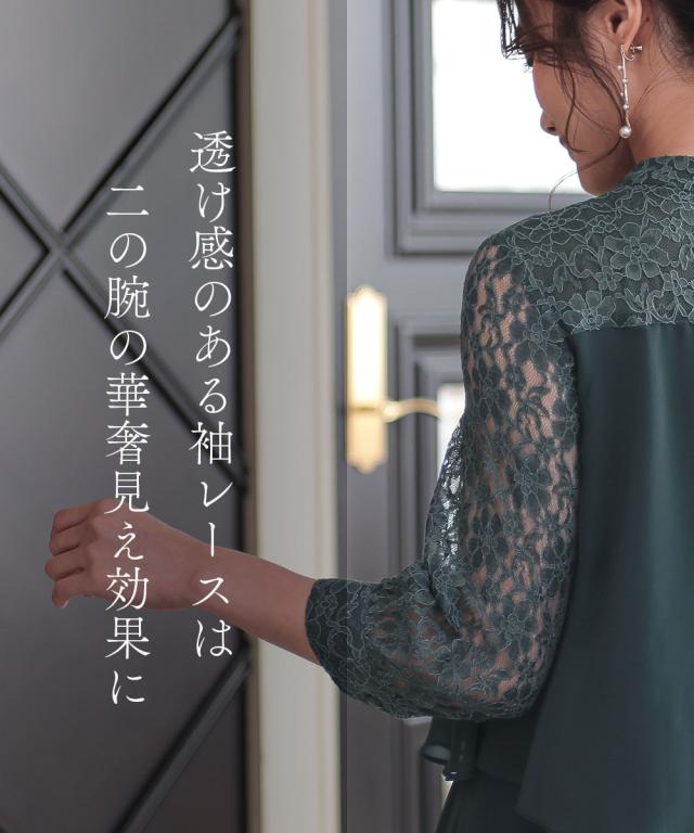 品質=[本体]ポリエステル100%(織物 シフォン)[別布]レーヨン65%・ナイロン35%(編物 レース)[裏地]ポリエステル100%【裏地】有(身頃部) 後スナップボタン開・袖口カフスボタン開・後ファスナー開・ウエスト後ゴム入レース柄の出方が多少異なる場合があります。繊細なレースを使用しているため、引っかかりなどにご注意ください。※注意コメントお客様のパソコン・スマホのモニターや照明等により、実際のお色と多少異なるように感じられる場合がございます。ご了承くださいませ。中国製ドライクリーニング