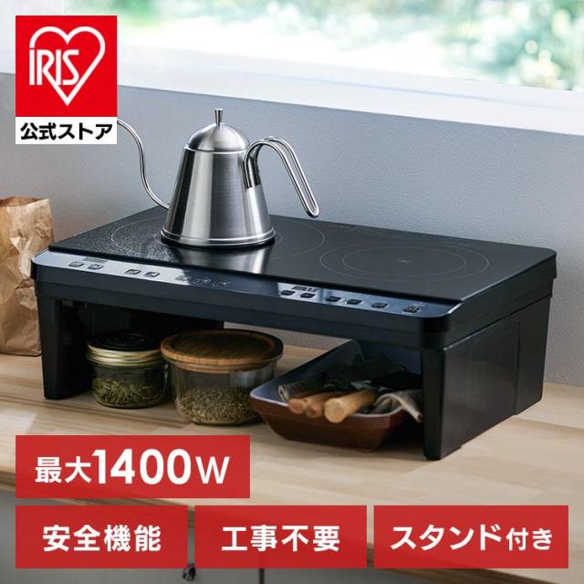 ihクッキングヒーター 2口 1400W 据置型 ihコンロ 一人暮らし ihコンロ台 100V スタンド付き 据え置き ih コンロ IH調理器 電磁調理器 お手入れ 簡単 シンプル 操作 工事不要 簡単設置 すぐに使える キッチン アイリスオーヤマ IHK-WT41S-B *