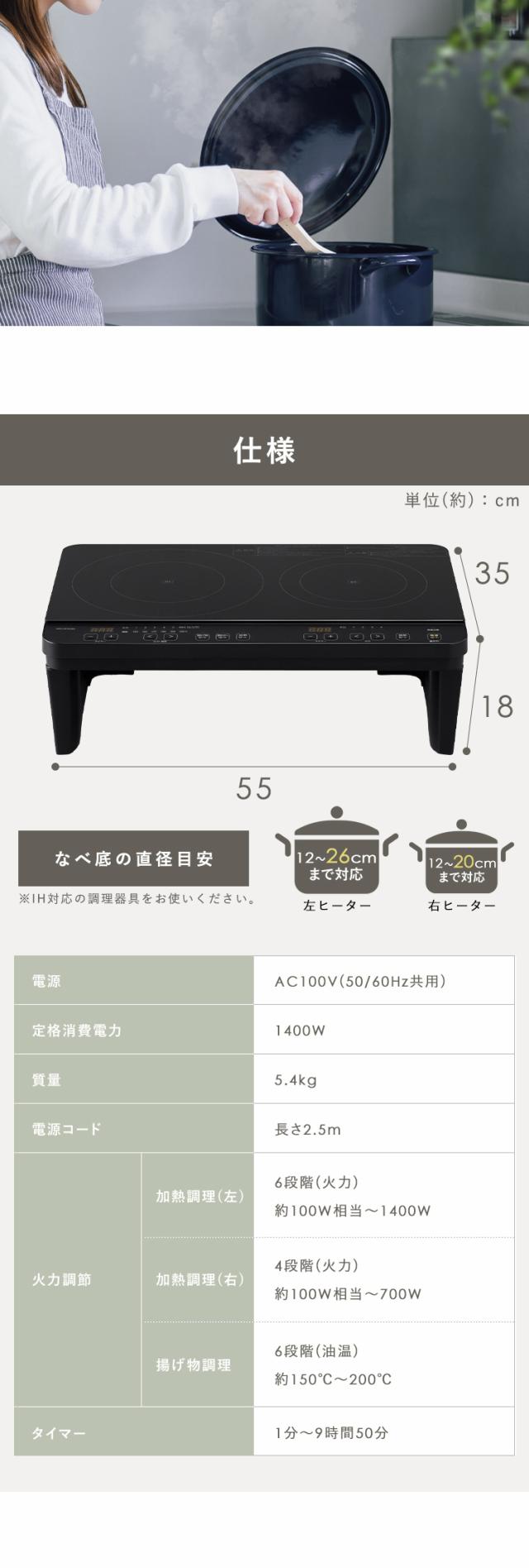(検索用:ihクッキングヒーター・2口・ihコンロ・一人暮らし・ih・コンロ・工事・不要・ihコンロ台・電磁調理器・置くだけ・お手入れ・簡単・脚付き・二口・4967576706100・アイリスオーヤマ)