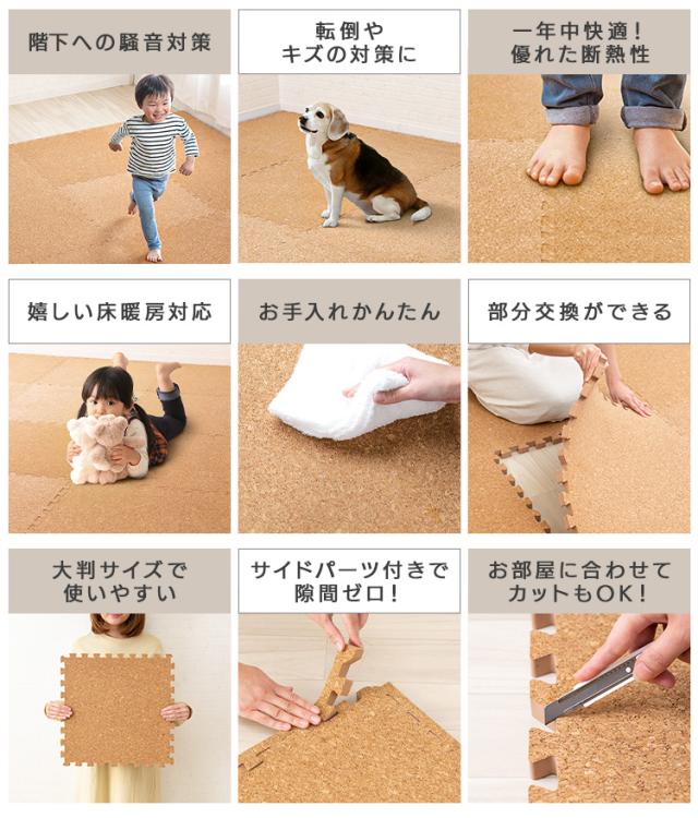 ジョイントマット コルクマット 45cm コルク ジョイントマット 45×45×2 64枚セット ナチュラル COJTM-452 床暖房対応 ジョイントマット コルク 防音対策 一年中 防水性 サイドパーツ付き 厚さ2cm 45×45cm 送料無料