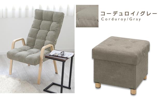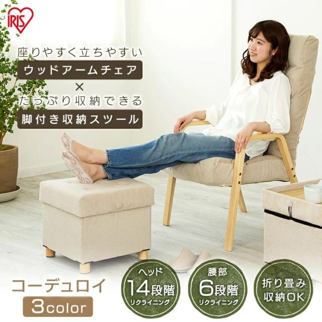 [2個セット] 椅子 イス ウッドアームチェア リクライニングチェア WAC-L 収納スツール 収納ボックス 肘置き アームチェア イス 椅子 コーデュロイ スツール オットマン アイリスオーヤマ 新生活 インテリア