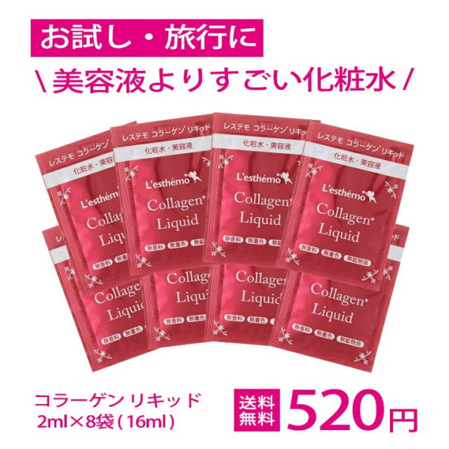 520円 送料無料 4日間お試し8袋 シルク姉愛用 コラーゲンリキッド 美容液よりすごい化粧水 水を一滴も使わない濃密コラーゲン 美容液 レステモ
