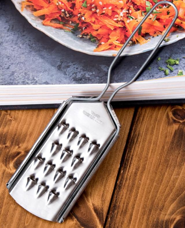 タイの屋台やキッチンなどで使われている、フードグレーターです。食材の歯ごたえを楽しめる、荒削り用タイプとなっております。力を入れてもグネグネせず、見た目よりも頑丈で頼りになります。■にんじんしりしりへオススメ