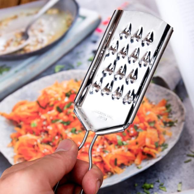 色々な料理へ使えるフードグレーターですが、沖縄の郷土料理で、人参をスライスする「にんじんしりしり」へもオススメ。荒削りで、人参の歯ごたえを十分残してくれるので、シャキシャキとした食感と、人参の甘みを楽しむことができます。クミン風味の人参サラダなんていうのも美味しそうですね。