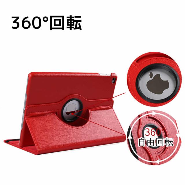 縦向きでも横向きでも立てかけることができる、360度回転可能、iPadPUレザーケース。