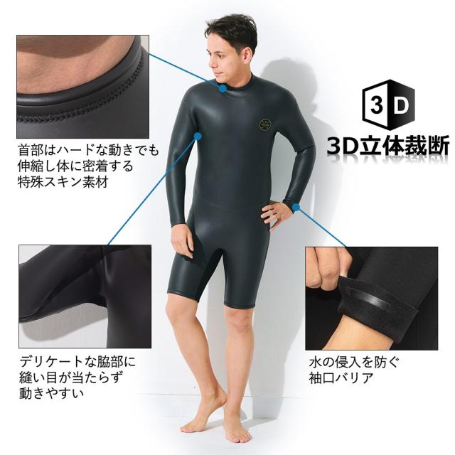 メンズ スキン ロングスプリング 3mm ウェットスーツ ロンスプ FELLOW ラバー ウエット サーフィン 日本規格