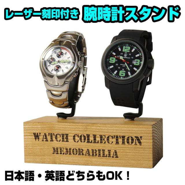 腕時計スタンド 2本用 G型 木製台座 タモ材 レーザー刻印付き 加工日数2〜3営業日[net0382]