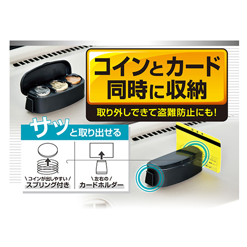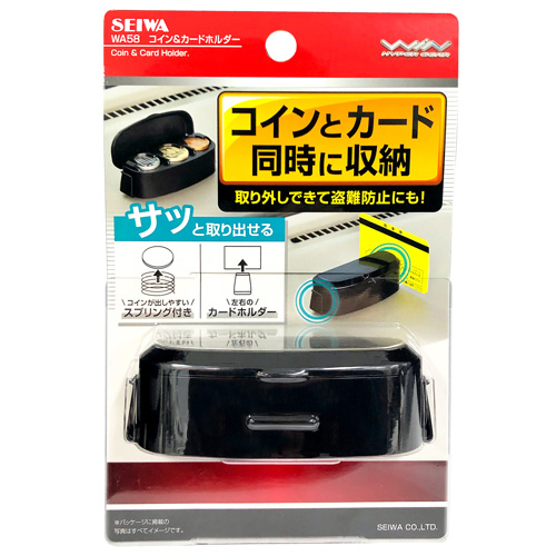 セイワ/SEIWA コイン&カードホルダー チケット等 収納 車内 便利 フタ付 取り外し簡単で盗難防止にも WA58