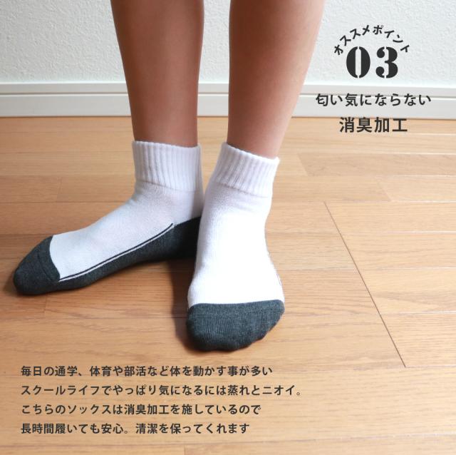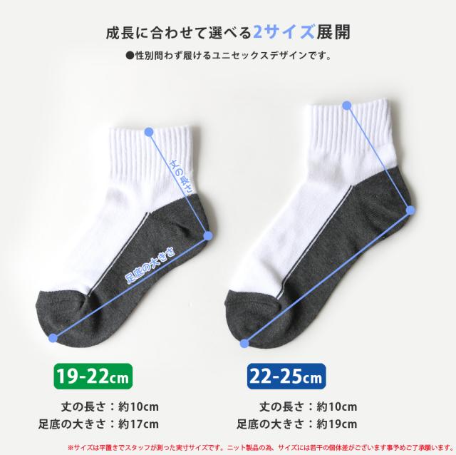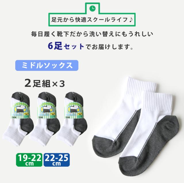 キッズ ジュニア 男の子 女の子 スクール 汚れ目立たない 足底切り替え 白 リブ 靴下 消臭 つま先・かかと補強 ミドル丈6足セット 通園 通学 学校 スポーツ 部活 丈夫 サポート