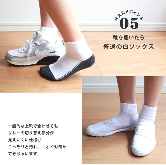 ●洗っても洗ってもなかなか落ちない白靴下の茶色い汚れ。手洗いでのゴシゴシ洗い、、、本当に負担ですよね。そんな洗濯時のストレスから解消!忙しいママにも嬉しい足底の汚れが目立ちにくいスクールソックスが新登場です! ●つま先・かかと補強で丈夫で長持ち!プラス消臭加工で足のニオイも気にならない! ●履き口は幅広リブで足首に しっかりフィット。ズレにくいから 運動やスポーツにも◎ ●靴を履いたら普通の白ソックスなので見た目も◎ |