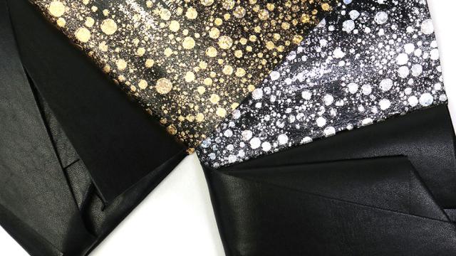 袱紗をモチーフにした革小物ブランド「所作」の、ラグジュアリーで奥行きある模様が魅力的な折り財布。ゴールドは暗闇で光に反射する水晶のように、シルバーは雪が降っている美しい情景のようにイメージされており、つい手に取って眺めたくなるような仕上がりです。