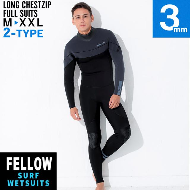 FELLOW ウェットスーツ フルスーツ ロングチェストジップ メンズ 3mm サーフィン ジャージ JPSA 日本規格