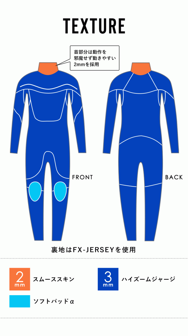 FELLOW ジャージ ロングチェストジップフルスーツ 3mm SS_wet