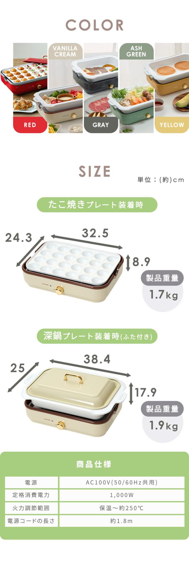 ホットプレート たこ焼き 深鍋 プレート2種 最大250℃ 温度調節可 コンパクト セラミックコーティング おしゃれ プレゼント ギフト お祝い 鍋 焼肉 お好み焼き パンケーキ 新生活 蓋付 お手入れ簡単 着脱式 アイリスオーヤマ PHP-1002TC *