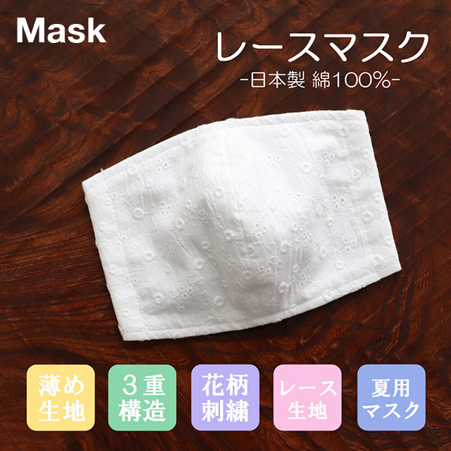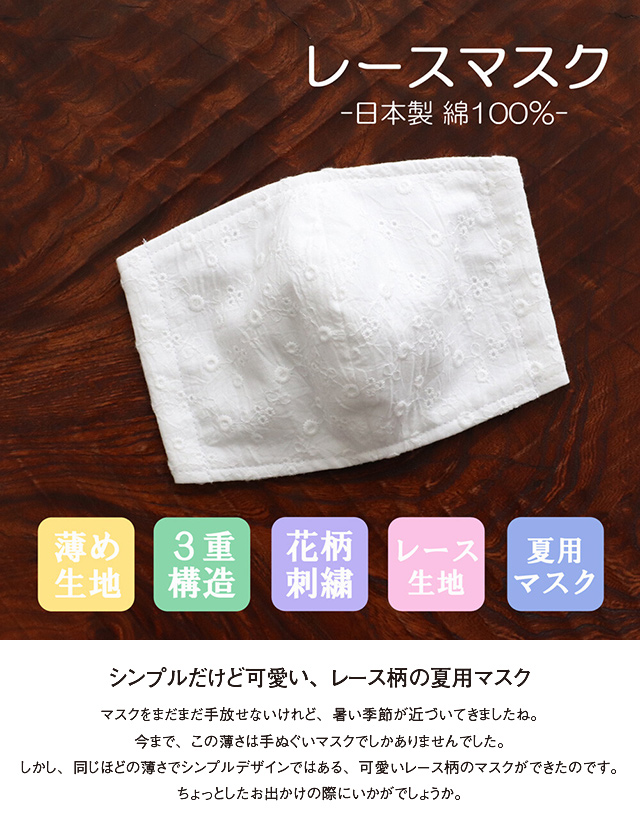 【日本製】レース マスク 夏用 薄め 洗える 大人用【立体マスク ウイルス対策 ハウスダスト】
