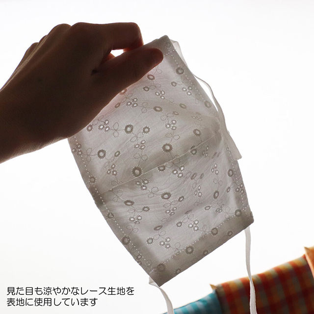 マスクをまだまだ手放せないけれど、暑い季節が近づいてきましたね。 当店にも、夏用の薄いマスクができました!今まで、この薄さは手ぬぐいマスクでしかありませんでした。しかし、同じほどの薄さでシンプルデザインではある、可愛いレース柄のマスクができたのです。ちょっとしたお出かけの際にいかがでしょうか。