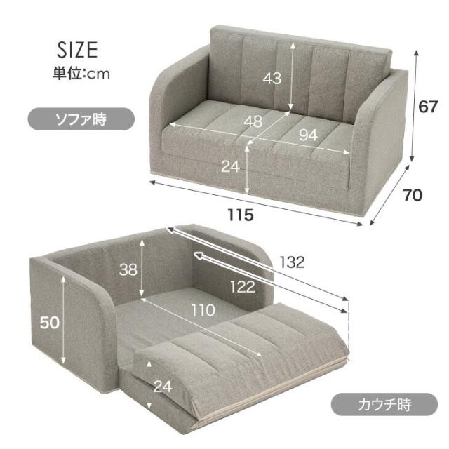 ■サイズ ソファ時:幅115x奥行70x高さ67cm