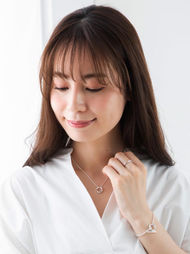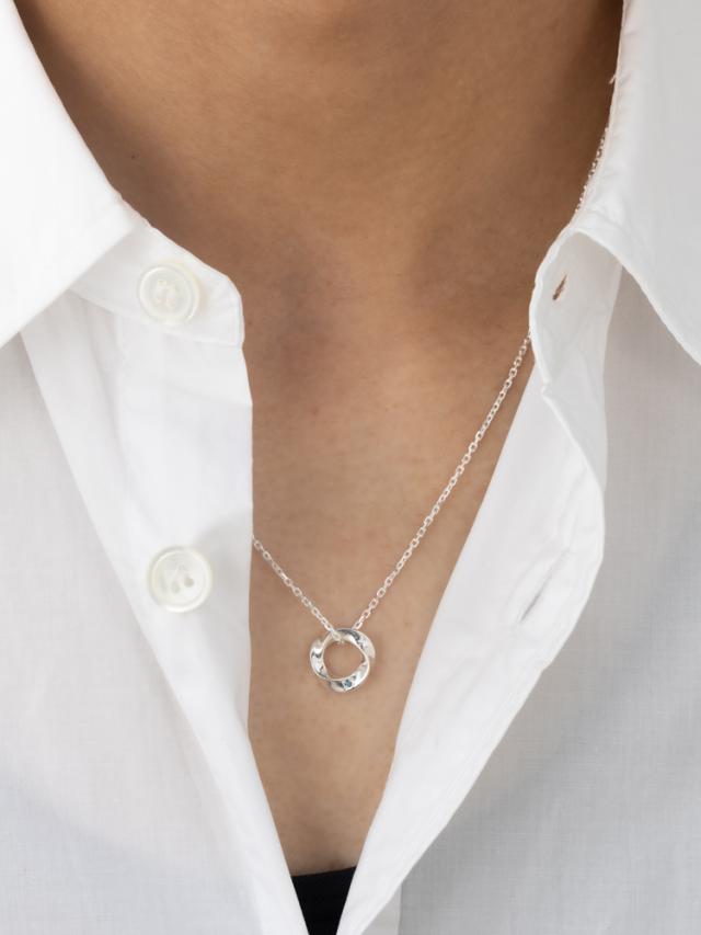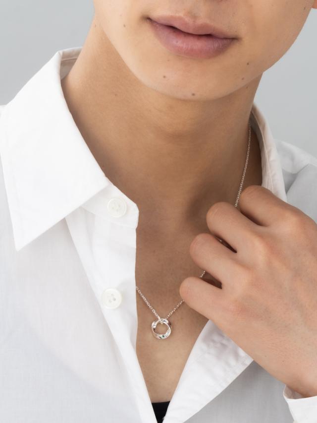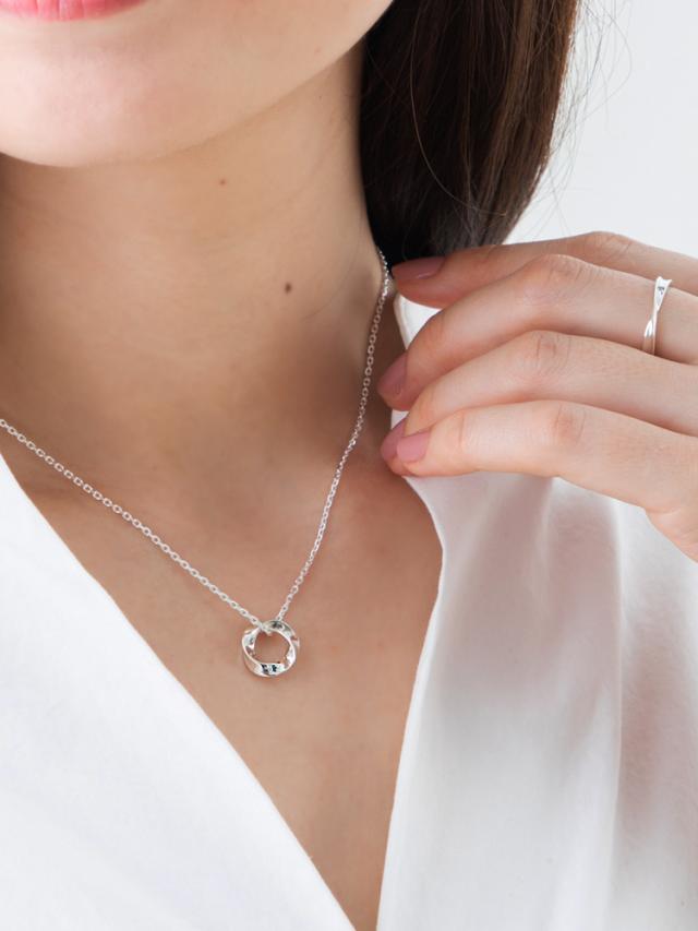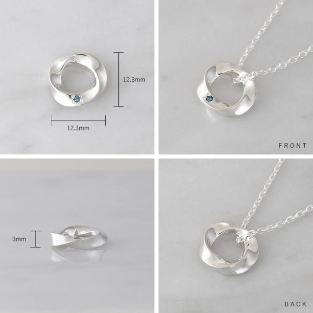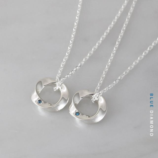 シルバーのなめらかなひねり曲線に、ブルーダイヤモンドが鮮やかに映えるメビウスペアネックレス。