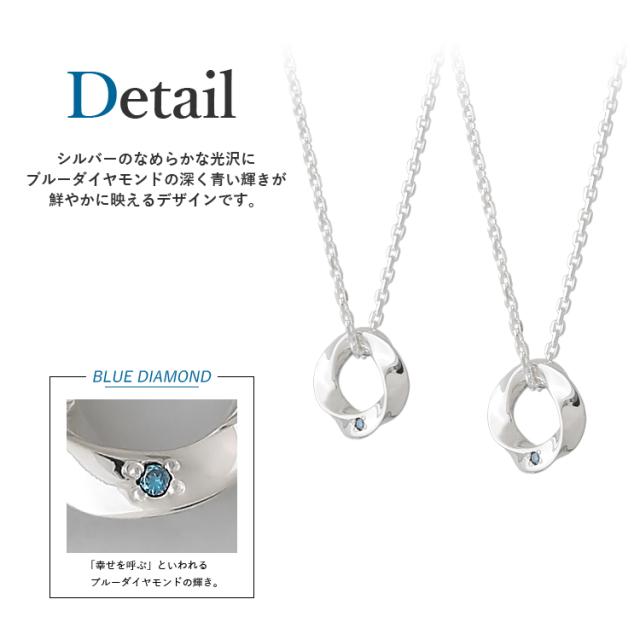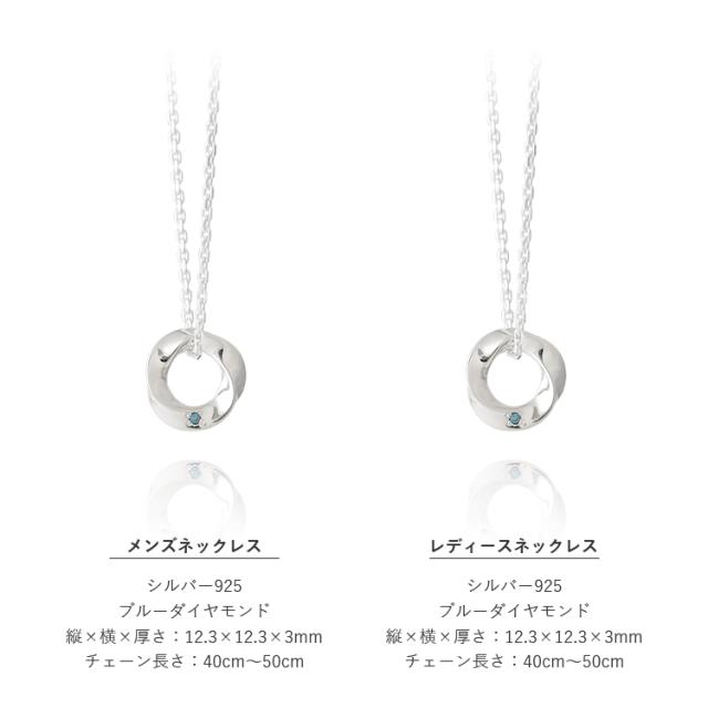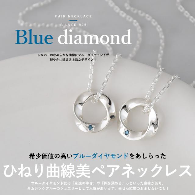 ペアネックレス ブルーダイヤモンド ひねり ツイスト シンプル 大人 シルバー925 日本製アズキチェーン ケース付き 2本セット (jln115bld_pair)